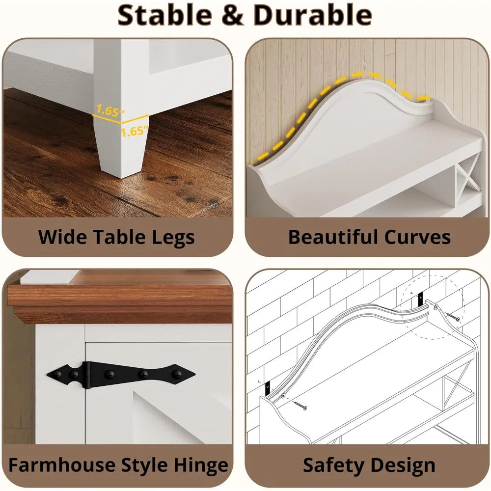- Flexible and Versatile: This large bar cabinet combines a buffet cabinet and upper cabinet to meet your various needs. It can be used as a kitchen pantry, a living room coffee cabinet, or a sideboard. After removing the upper half, it can also serve as a console table. The farmhouse-style design adds a touch of rustic elegance to your home