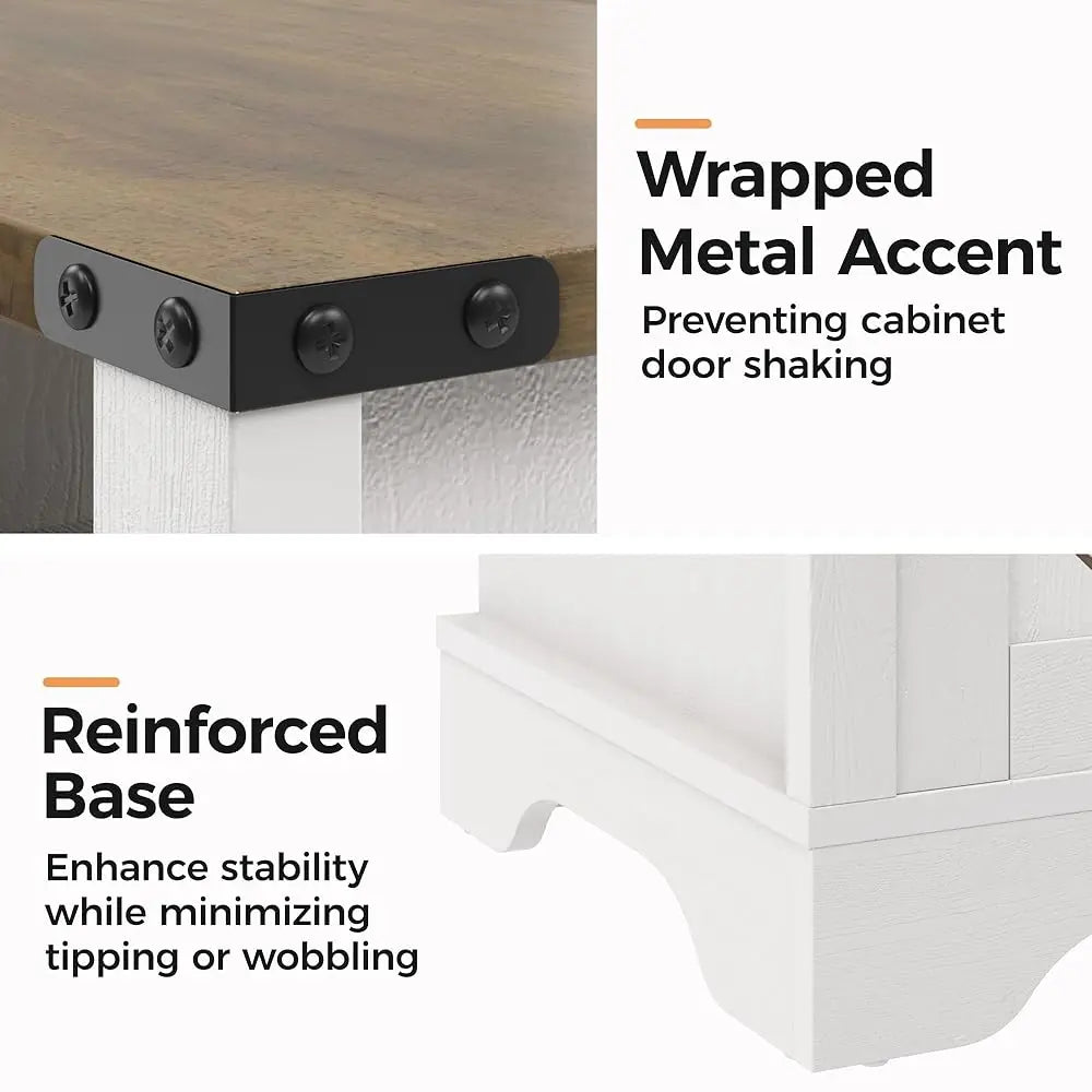 Farmhouse Nightstand, White End Table With Charging Station, Tall Bedside Table With Large Storage Room And Shelf, Wooden Rustic Nightstand For Bedroom, Home Office, White And Rustic Oak