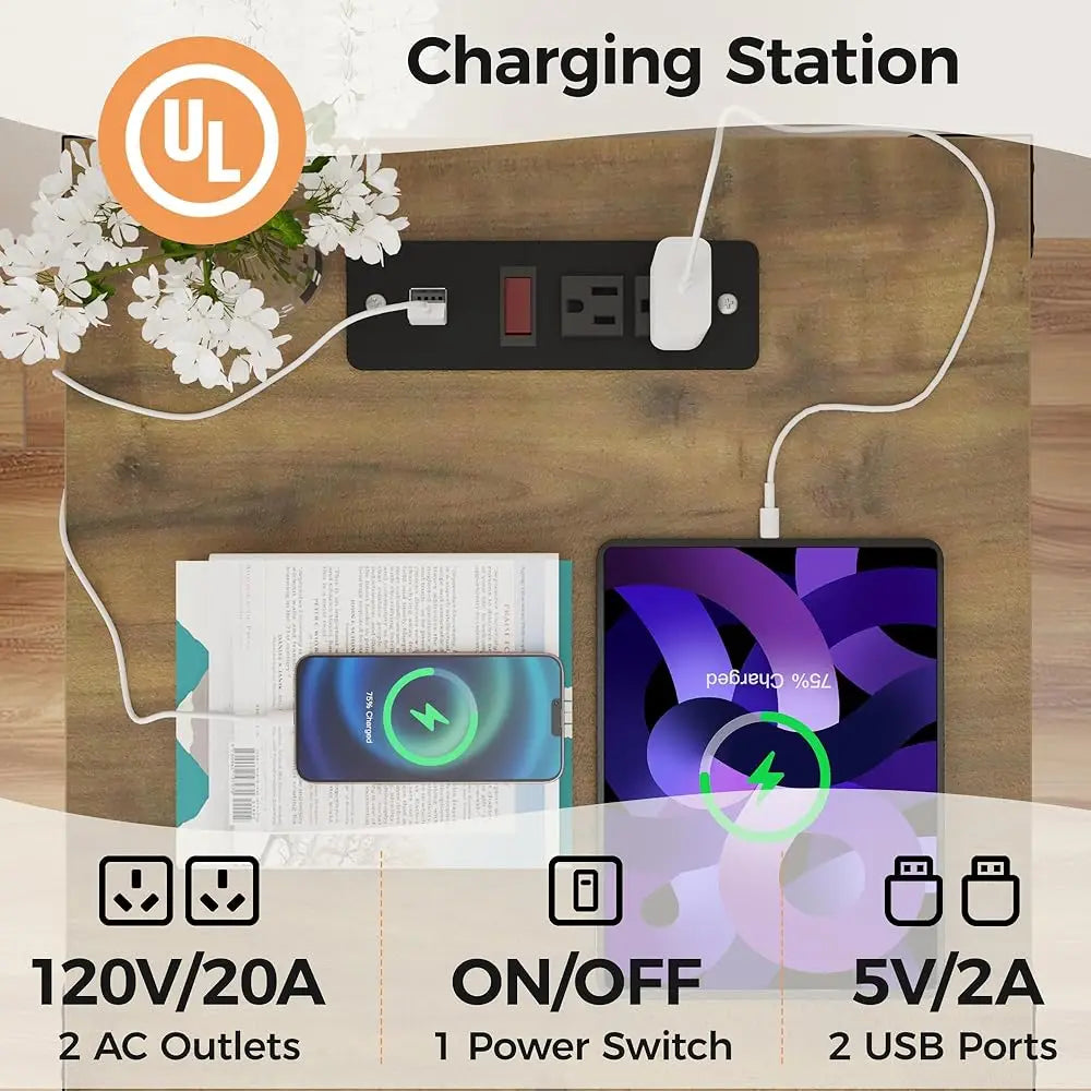 【Ul Certified Charging Station With Control Switch】The Tall Nightstand Features A Convenient Control Switch For Easy Power Management. With 2 Usb Ports And 2 Plug Sockets, You Can Power Up Your Smartphone, Tablet, And Other Gadgets Right By Your Side.