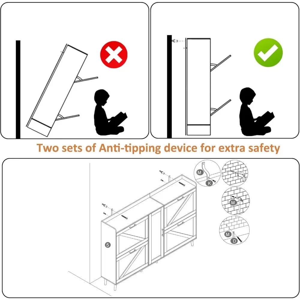 【Farmhouse-style and Extra Boot Storage】The clean lines and sleek profile give it a retro and stylish appearance and instantly enhance the visual appeal of the hallway or front door. It is an attractive shoe armoire and goes well with a farmhouse-themed home. The cabinet comes with an anti-tipping device for wall mounting to ensure safety.The depth of this cabinet is 11.81 inches,inside the cabinet ,it is enough for boot storage .The adjustable shelves on the side cabinets can be adjusted to the height of the shoes to store high-top shoes and women's boots.