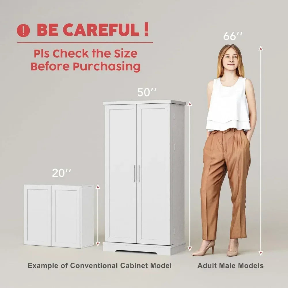 【Ample Storage for Small Space】Say goodbye to clutter and hello to organization with our cute white kitchen pantry cabinet. With a height of 50", it's 9" taller than other 40" pantry cabinets on the market, providing an entire layer of storage space. DIM of 25"W x 14"D x 50"H, it's perfect for small kitchens, living rooms, and apartments that are tight on space