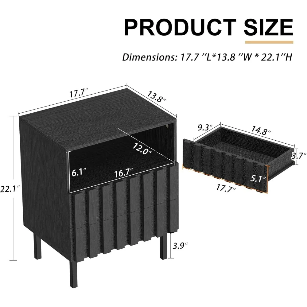- Dresser dimension: 43.3"L x 13.6"D x 28.5"H | Nightstand dimension: 17.7"L x 13.8"D x 22.1"H.