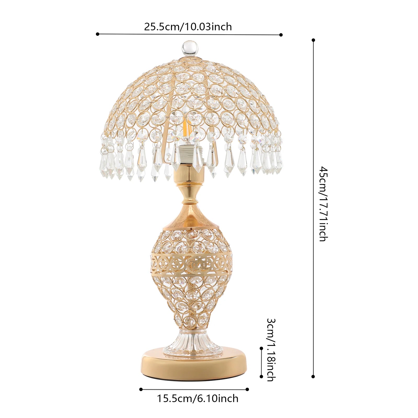 Modern Crystal Table Lamp End Side Light w/ Plug in Cord ON/Off Switch Nightstand Decorative Fixture for Bedroom Living Dinning
