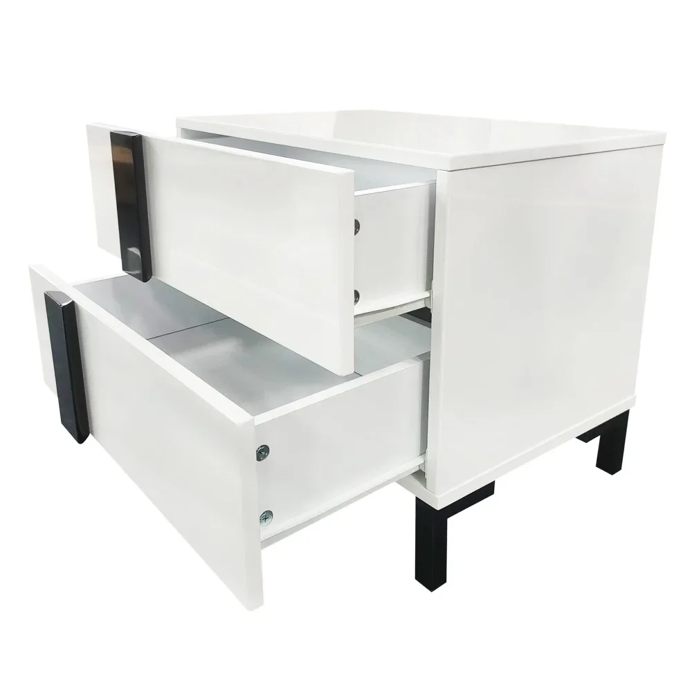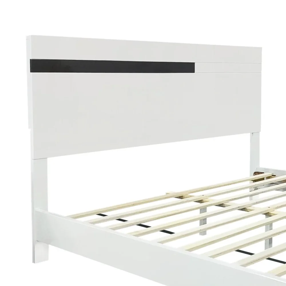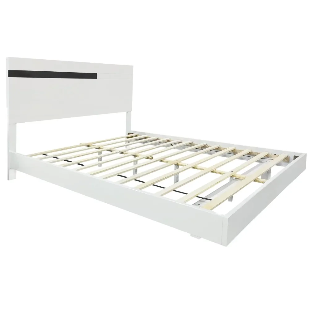 Modern High Gloss 3-Piece Bedroom Set Floating Bed Frame Queen Size Platform Bed with LED Light & 2 Nightstands, White