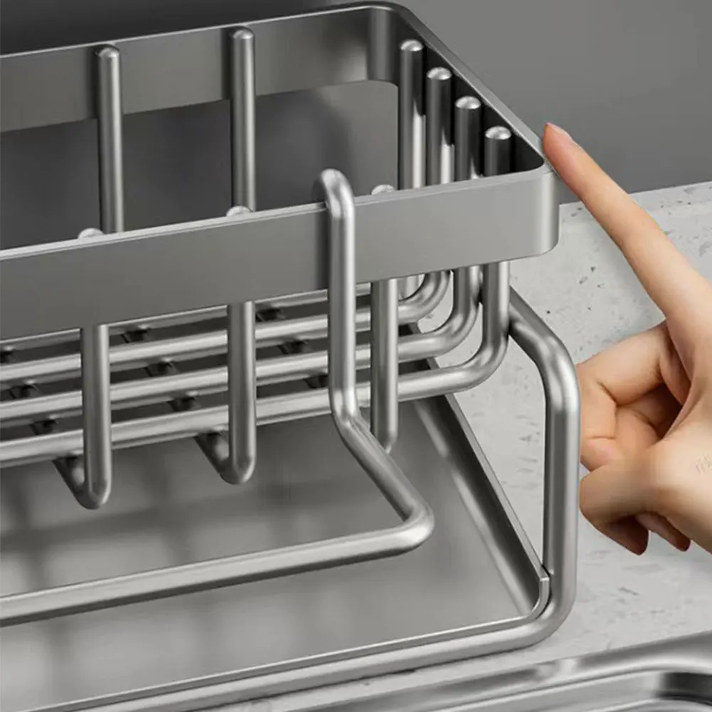 5. Smooth Welding: Designed with a smooth welding structure, this soap drainer towel organizer is scratch-resistant, ensuring easy and safe storage of your cleaning utensils without any damage.