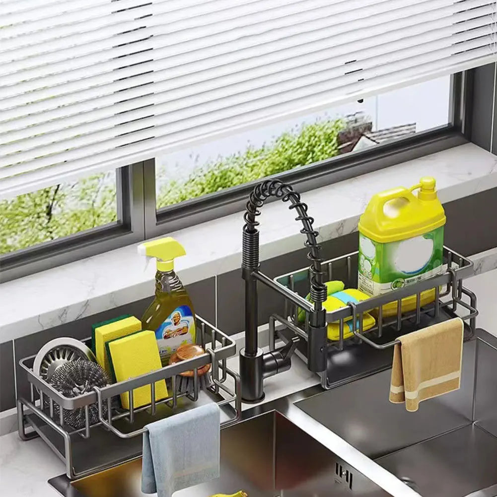 Sink Drain Rack Multifunctional Sponge Storage Faucet Holder Scratch-Resistant Soap Drainer Towel Organizer for Kitchen Bathroom